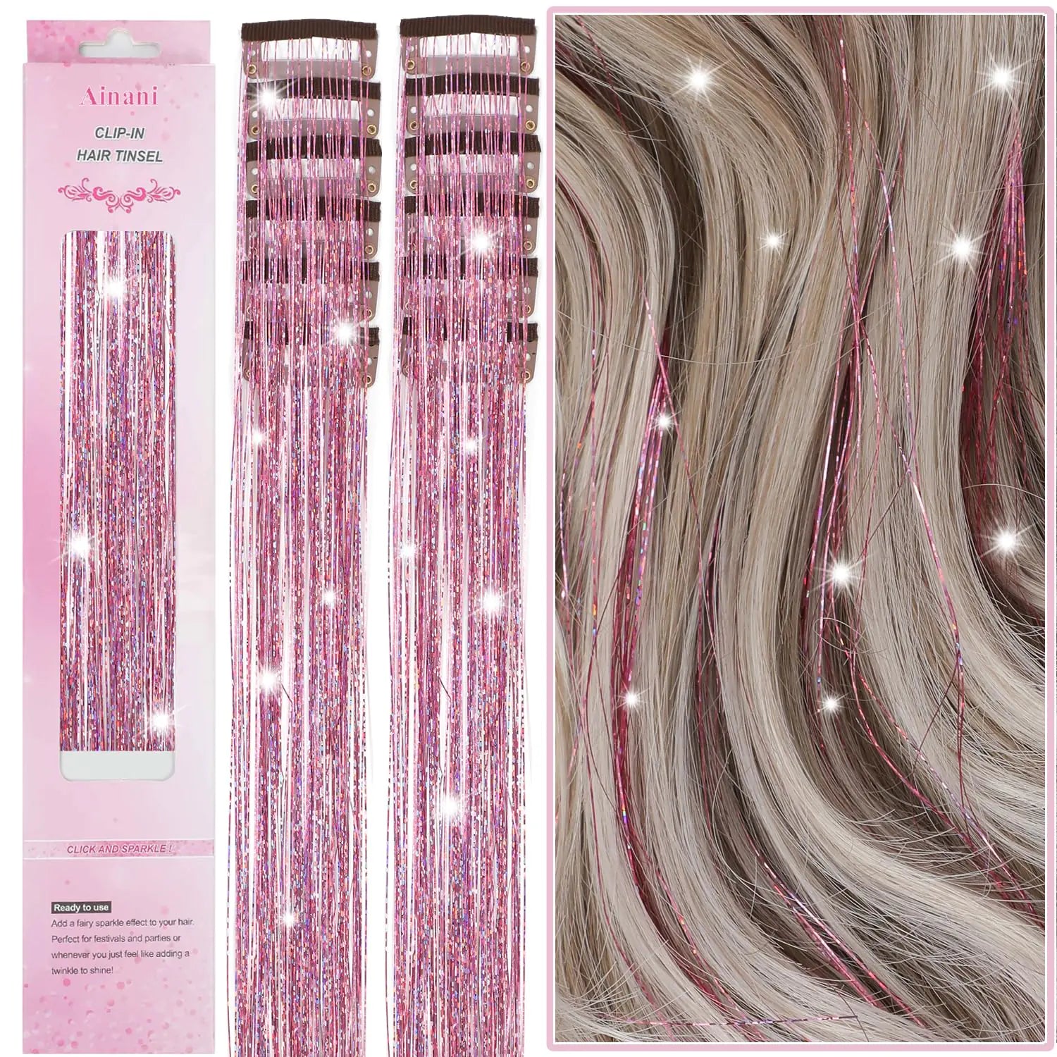 Pink Glitter Hair Tinsel Clip-Ins – 12 Pack